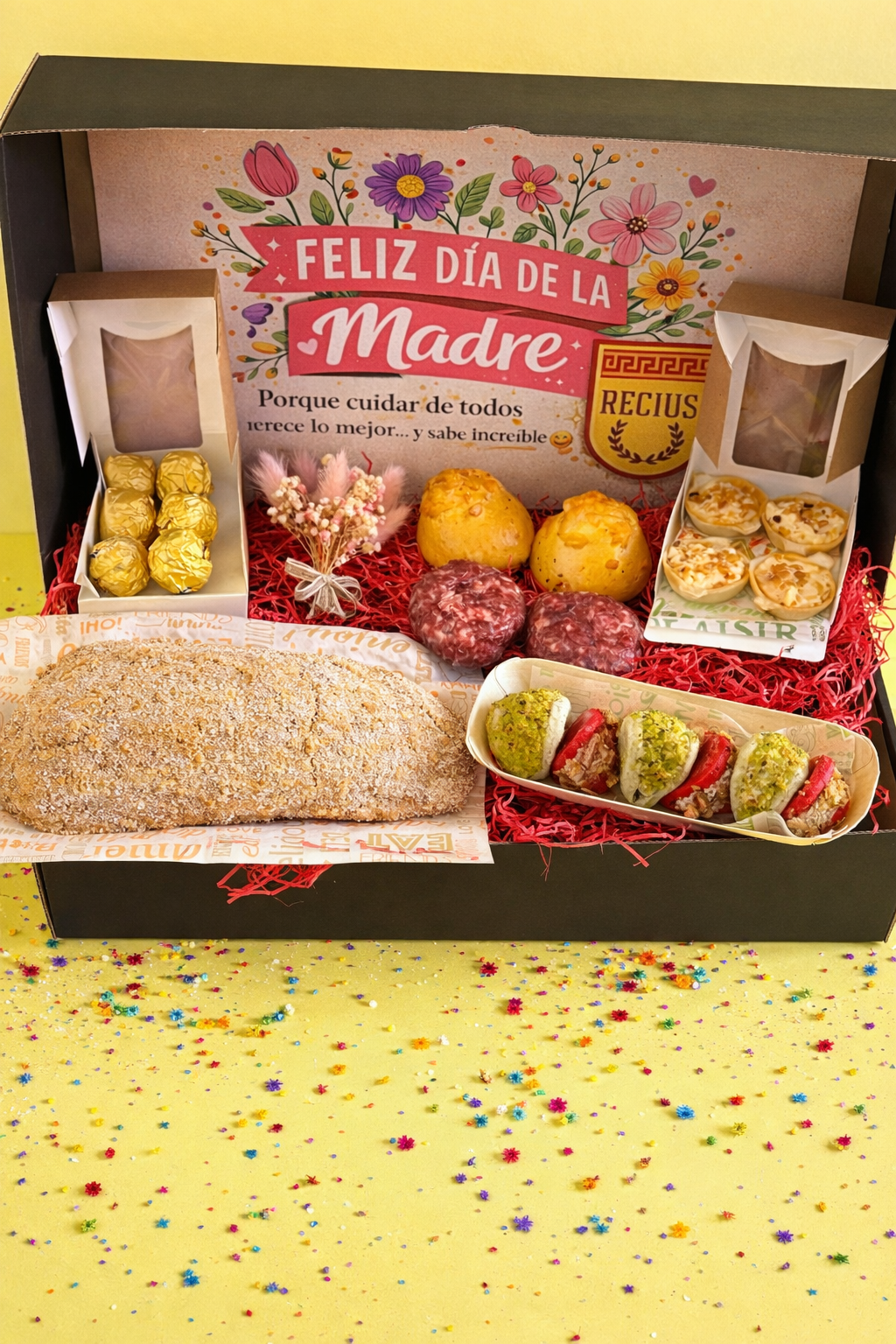 ✔ Regalo completo: comida + flores